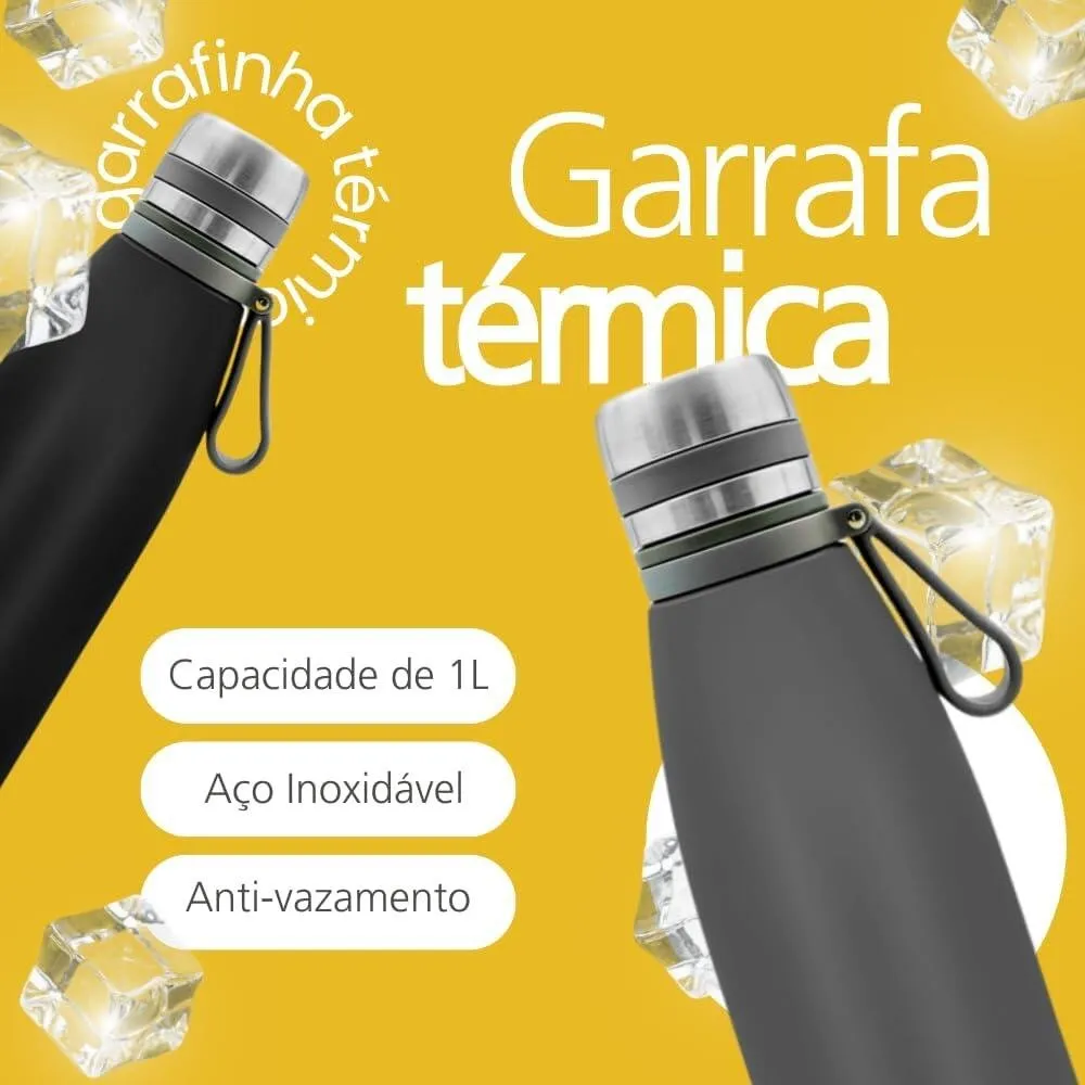 Garrafa Térmica Inox 1000ml Parede Dupla A Vácuo Antivazamento
