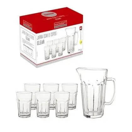 O Conjunto Hauskraft CJPS-075TR reúne uma jarra e seis copos em vidro transparente, oferecendo praticidade e elegância na hora de servir bebidas. A jarra possui capacidade adequada para uso diário ou em encontros com família e convidados, enquanto os copos proporcionam conforto e versatilidade.